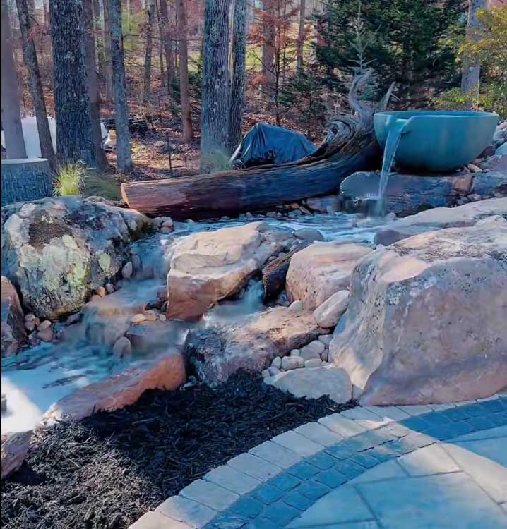 Pondless waterfalls offer all the sensory benefits of flowing water—sight, sound, and serenity—without the need for fish care, pond cleaning, or deep water management. Since the water flows down rocks or a stream and disappears into a hidden underground reservoir, there's no open water exposed at the surface, making it an ideal choice for families with children or pets. This makes pondless waterfalls not only safer, but also more space-efficient, perfect for small yards or high-traffic areas.